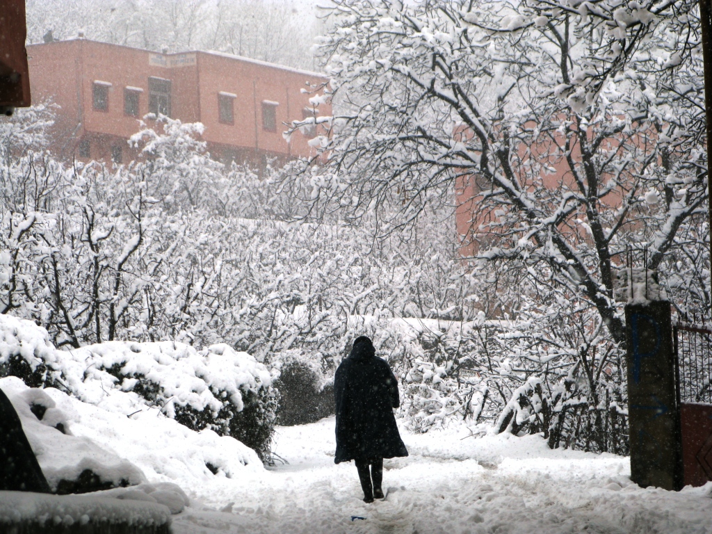 Este año, no obstante, nos encontramos con una previsión de tiempo meteorológico completamente “catastrófica”, llueve en Marrakech, cae aguanieve en Asni y nieva con fuerza en Imlil, donde ya nos da la bienvenida una estampa de postal completamente navideña. Con muñeco de nieve incorporado. La previsión es más de lo mismo, para hoy, mañana y pasado mañana.