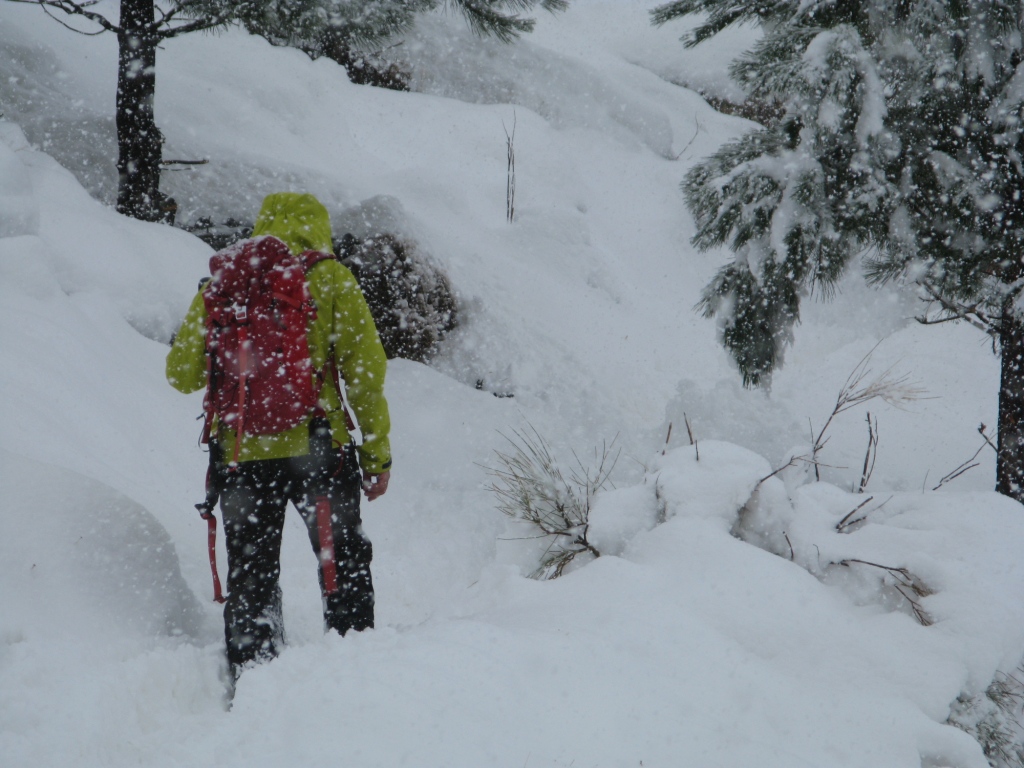 La nevada, suave, larga va tapando los contrastes del camino, la vegetación, las rocas. Transmite paz, armonía, sosiego … subimos poco a poco siguiendo el trazo del guía, que de tanto haber caminado por estas sendas , adivina el camino sin problema a pesar de que el mismo está completamente oculta bajo más de palmo y medio de nieve reciente.
