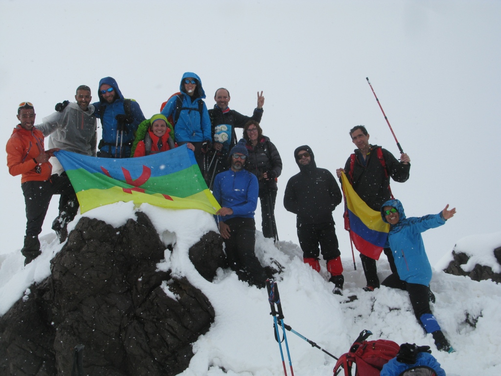 A diferencia del día anterior, al llegar a la cumbre secundaria del Adrar Tamalaroute, se deja ver el sol y parte del paisaje. Una deslumbrante nieve brillante y de un blanco intenso nos regala unas buenas luces para la foto de cumbre. A la bajada nos espera una buena comida en el collado de Tizi n’Tamatert. Y por la tarde una tranquila bajada al corazón de Imlil donde tomamos un buen café y parte del equipo aprovecha para realizar algunas compras de productos locales.