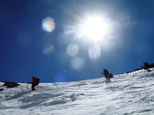 - 3r DÍA – 17 DE ABRIL: MONTE TOUBKAL (4.136 M) – REFUGIO TOUBKAL – IMLIL. La jornada comenzará a la madrugada. A media mañana – medio día estaremos en la cumbre del Toubkal (4167 m). Desde allí disfrutaremos de un extenso paisaje de montañas, destacaremos las del vecino macizo de los Ouanoukrim con varias cumbres de más de cuatro mil metros de altitud, entre muchas otras. En la lejanía hacía el sur divisaremos los macizos pre-saharianos del Siroua y del Anti Atlas, hacía el norte la extensa planicie del Haouz, donde se encuentra la ciudad de Marrakech. Regresaremos al refugio y tras comer descendemos a Imlil donde pernoctaremos en albergue.