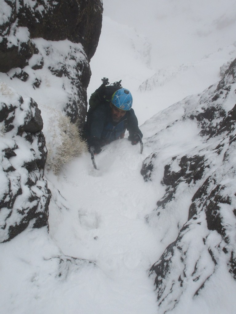 Se trata de un corredor de nieve mantenido entre 45º y 55º grados de inclinación, con tres secciones cortas de goulotte de hielo de 60º a 65º, que los primeros ascensionistas encontraron en idóneas condiciones y no se requirió el uso de cuerdas.