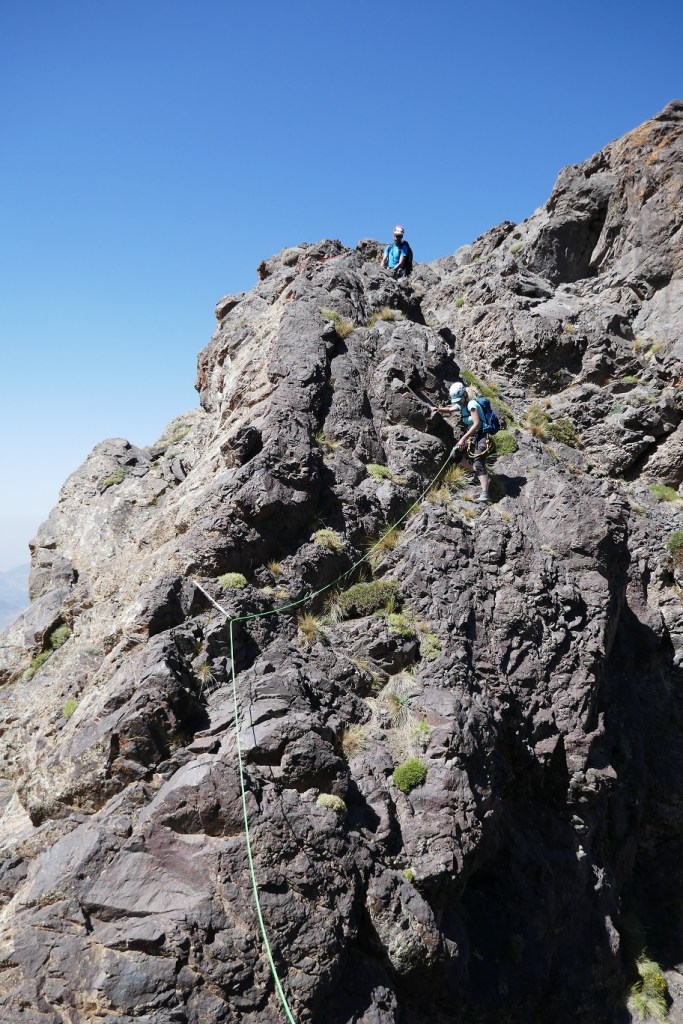 Dificultades: Máximo un corto tramo de III+. No hay ningún rápel. Solo los último 100 m de desnivel presentan dificultades técnicas.