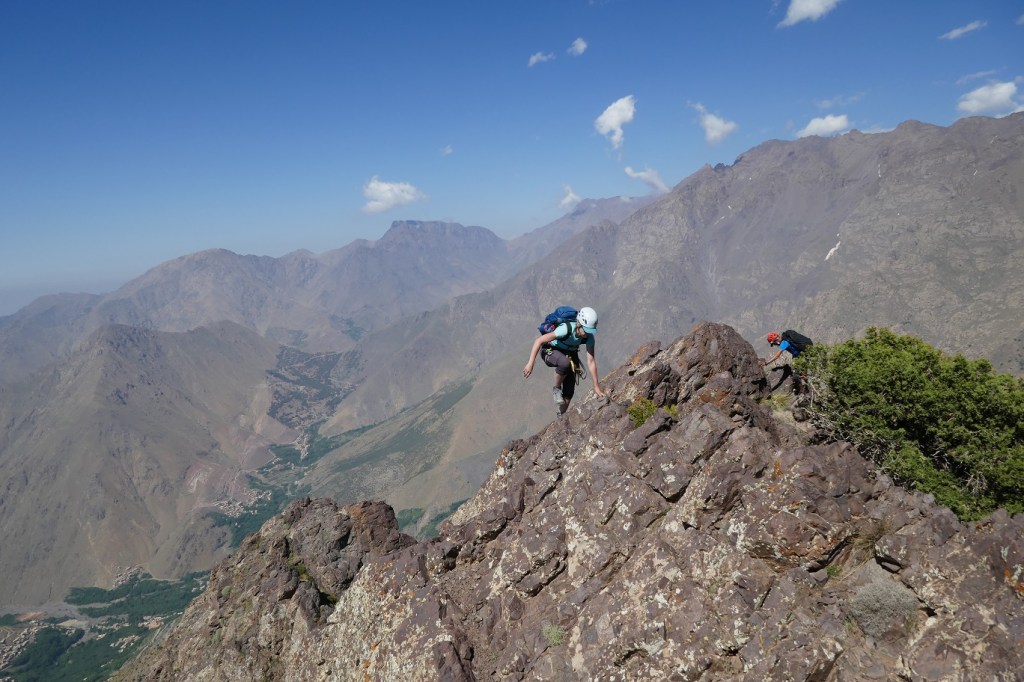 Variada ascensión de un largo cordal con un bonito tramo de cresta final con mucho ambiente. Sin duda una de las mejores ascensiones que podremos hacer saliendo y volviendo a Imlil.