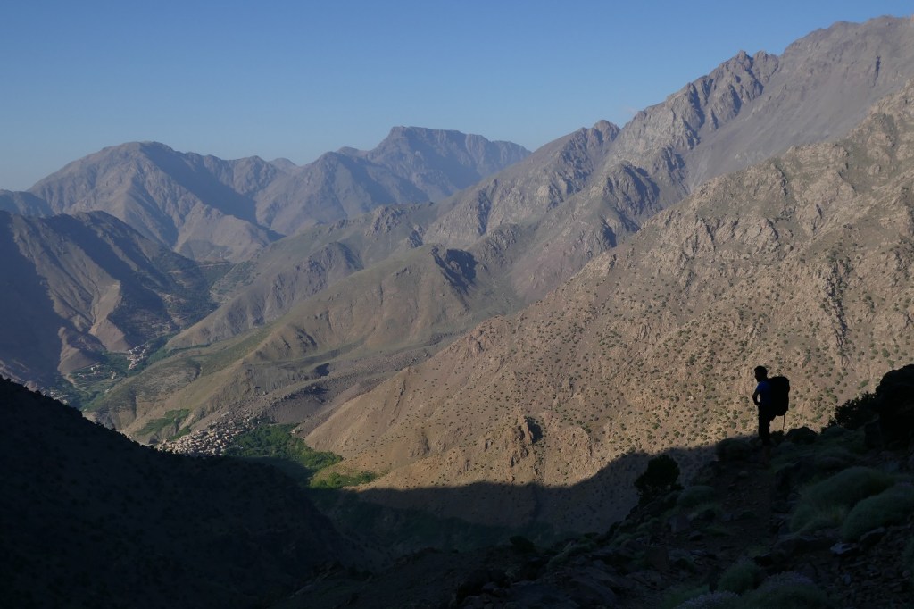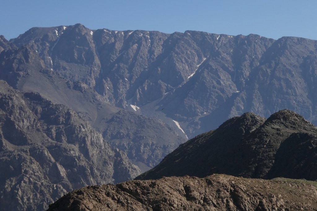 Para descender seguimos todo el cordal, subiendo las otras dos cimas de más de 3 mil metros hasta llegar al collado de Tizi n’Tzikert. Desde aquí descendemos hacia el este (nuestra izquierda) por el bonito camino bereber que baja a Aremd, y desde aquí, por la carretera asfaltada llegamos de nuevo a Imlil