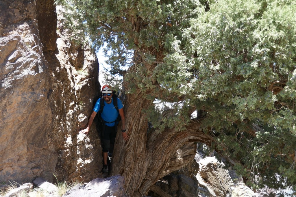 Más arriba se dibuja ya un largo cordal que subiremos sin complicaciones. Ancho lomo de subida constante y monótona donde se localizan grandes savinas españolas, también llamadas de Júpiter, algunas de las cuales albergan buenas sombras para descansar.