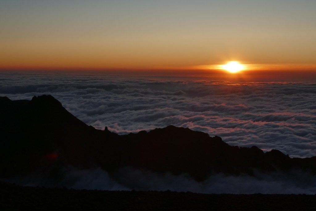 La noche fue perfecta en todos los sentidos. Una temperatura aceptable (apenas bajó el termómetro por debajo de los cero grados), una puesta de sol realmente alucinante, nada de viento, una visibilidad perfecta, un verdadero juego de luces y nubes a nuestros pies … millones de estrellas durante la noche, diálogos con la vía láctea ….