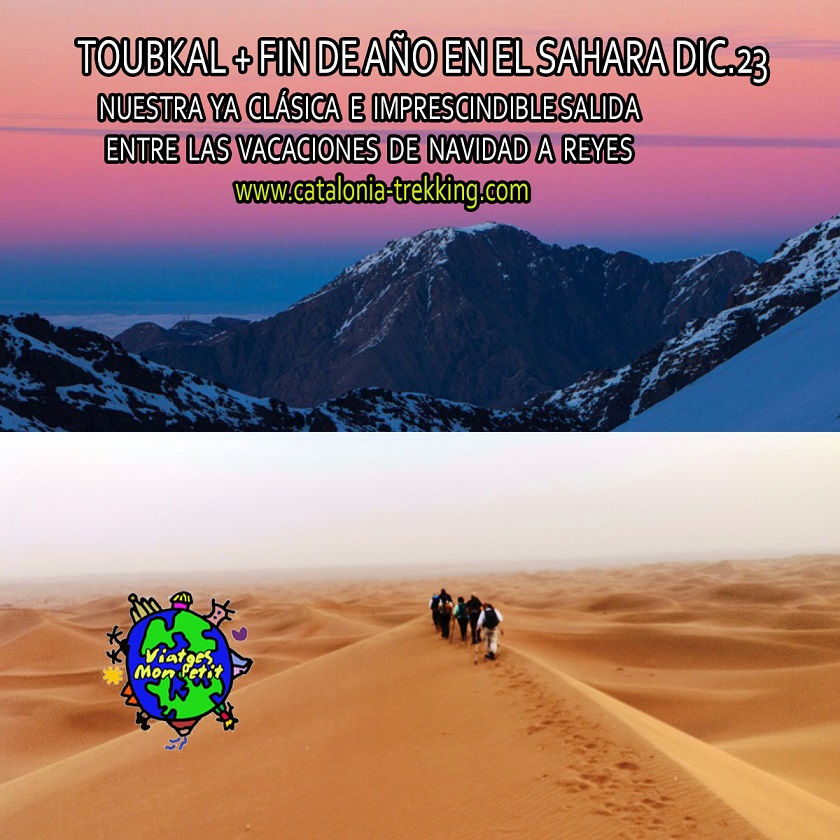 Incluimos este año la posibilidad de pasar el fin de año entre las dunas del desierto del Sahara, una increible manera de despedir el 2023 e iniciar con buenas experiencias el 2024. Con la coordinación y gestión (NO ASISTENCIA) de Pako Crestas como coordinador de la agencia Viatges Mon Petit y la contratación de los servicios de agencia de guías locales experimentados en la montaña.