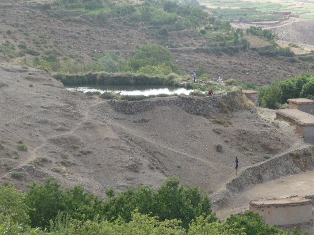 Al dia siguiente amanece con un cielo claro y un sol radiante. Cruzamos el cercano collado de Tizi n’Ouoraïne, con la majestuosa silueta del Toubkal como telón de fondo y bajamos hacia el valle para recorrer los pueblos de Tagouhite, Ibrouane, Tirhaltine y llegar al siempre entrañable lago de Ifni. Sin duda uno de los enclaves con mayor belleza de la cordillera. Tarde tranquila, reposo al lado de las negras aguas del profundo lago. Sobre nosotros el altivo Toubkal y al oeste el tórrido y mineral valle entre angostas paredes por donde subiremos mañana. El aire enrarecido de la tarde le da un aspecto singular, parece un paisaje extraído de otro planeta, otro mundo. Un mundo vacío, mineral, bajo una atmosfera roja y espesa.