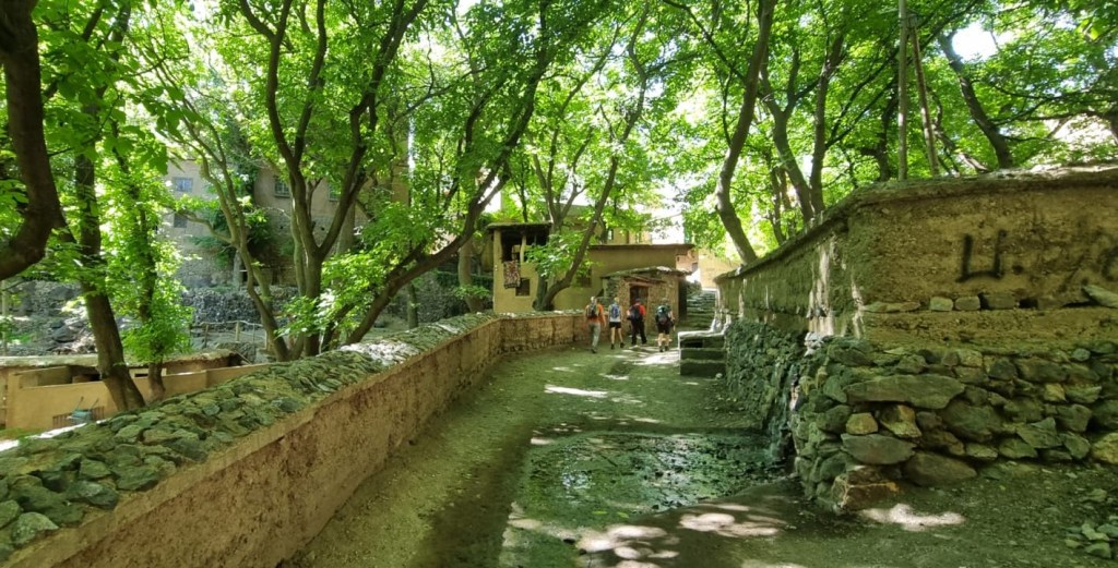 Caminando a cubierto de la siempre agradecida sombra de los árboles de ribera. Todo un regalo en el inicio de etapa hacia el refugio. La protección durará poco. Más tarde el sol castiga y las sombras brillan por su ausencia