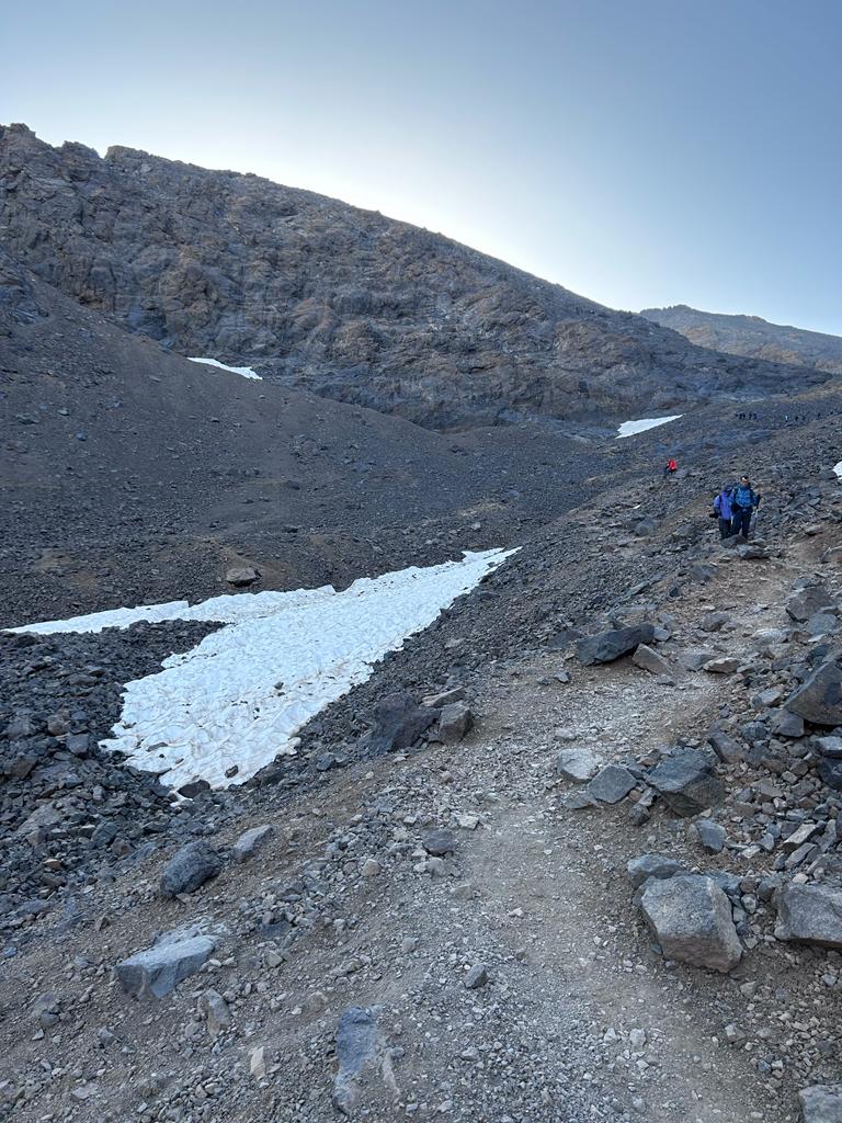 En la parte alta del Toubkal, circos intermedios del valle de Ikhibi Sur. Los pocos residuos de nieve del invierno ya lejano no tardarán demasiado en desaparecer definitivamente. Estamos en África y muy a pesar de la altura superior a 4mil metros, el verano aquí se escribe con mayúsculas
