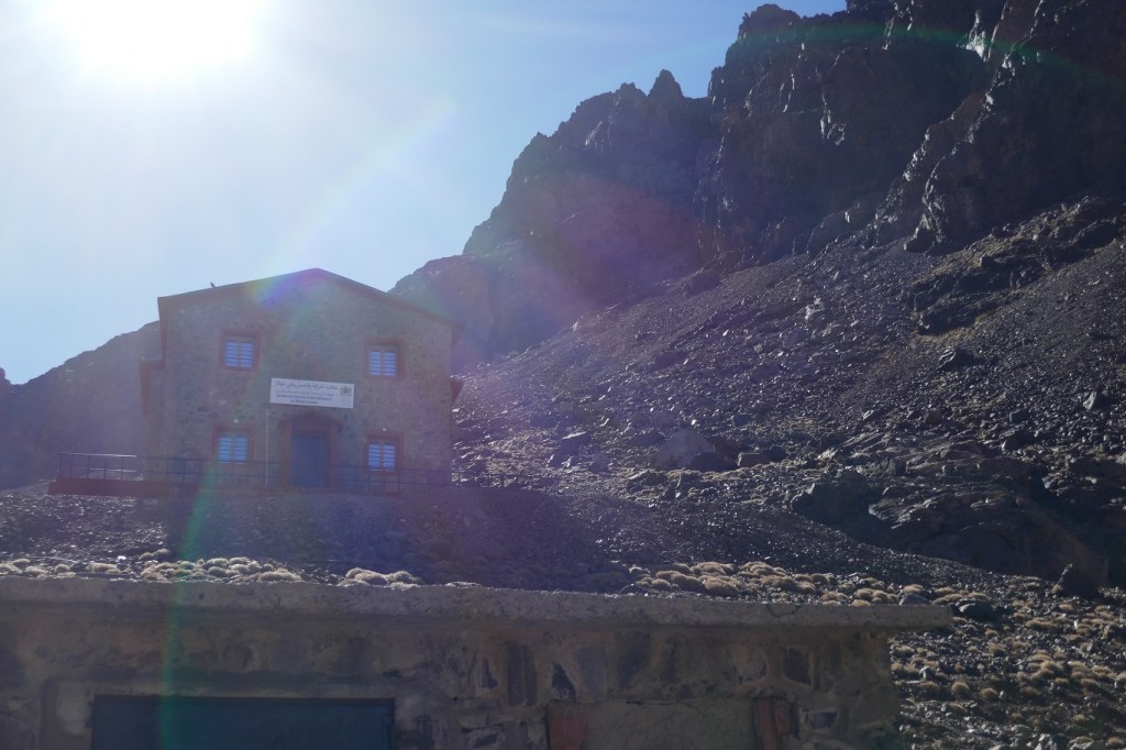 Justo en la zona de refugios de Toubkal es donde la afectación es más visible. Los derrumbes, algunos de cierta importancia, quedaron relativamente cerca de las construcciones. Concretamente, la más alta (el nuevo puesto de policía) tiene una enorme roca medio hundida en la pared posterior y grandes y nuevos bloques de piedra han ido a parar a las proximidades del cauce del rio. La famosa cascada del bloque empotrado, una clásica para los amantes de la escalada en hielo, ya no tiene bloque empotrado. ¡¡ Habrá de cambiarle de nombre!!