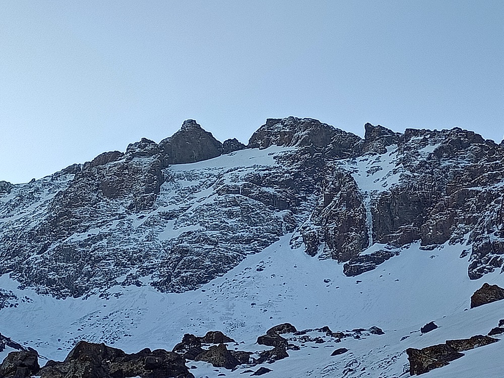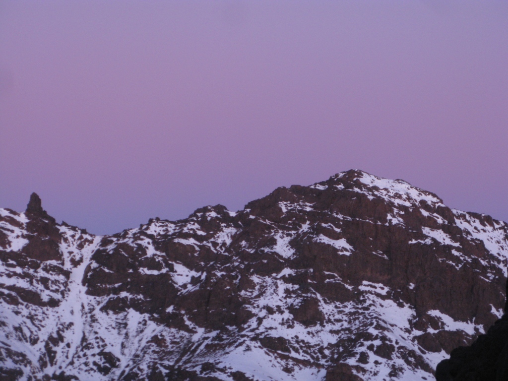 - 3r DÍA – 8 DE DICIEMBRE: MONTE TOUBKAL (4.136 M) – REFUGIO TOUBKAL – IMLIL. La jornada comenzará a la madrugada. A media mañana – medio día estaremos en la cumbre del Toubkal (4167 m). Desde allí disfrutaremos de un extenso paisaje de montañas, destacaremos las del vecino macizo de los Ouanoukrim con varias cumbres de más de cuatro mil metros de altitud, entre muchas otras. En la lejanía hacía el sur divisaremos los macizos pre-saharianos del Siroua y del Anti Atlas, hacía el norte la extensa planicie del Haouz, donde se encuentra la ciudad de Marrakech. Regresaremos al refugio y tras comer descendemos a Imlil donde pernoctaremos en albergue.