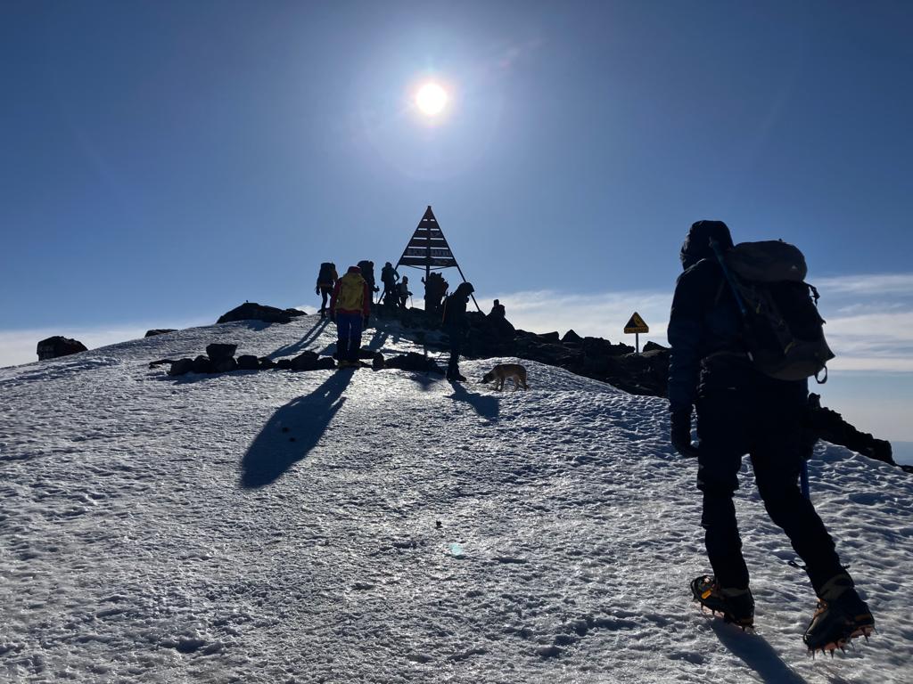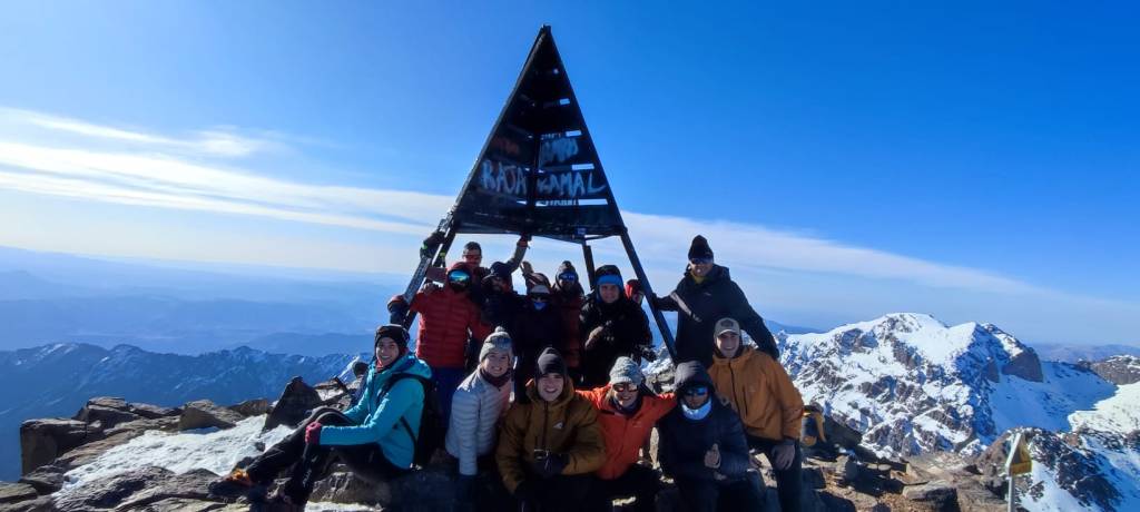 Cumbre !!! Estamos en lo alto del Toubkal, a 4.167 m. A pesar de los importantes desniveles y la altura superior a 4mil metros, el Toubkal es una cumbre donde la posibilidad de éxito es muy elevada. En la mayoría de nuestros viajes, el 100% de los participantes culminan esta agradable y alta montaña.