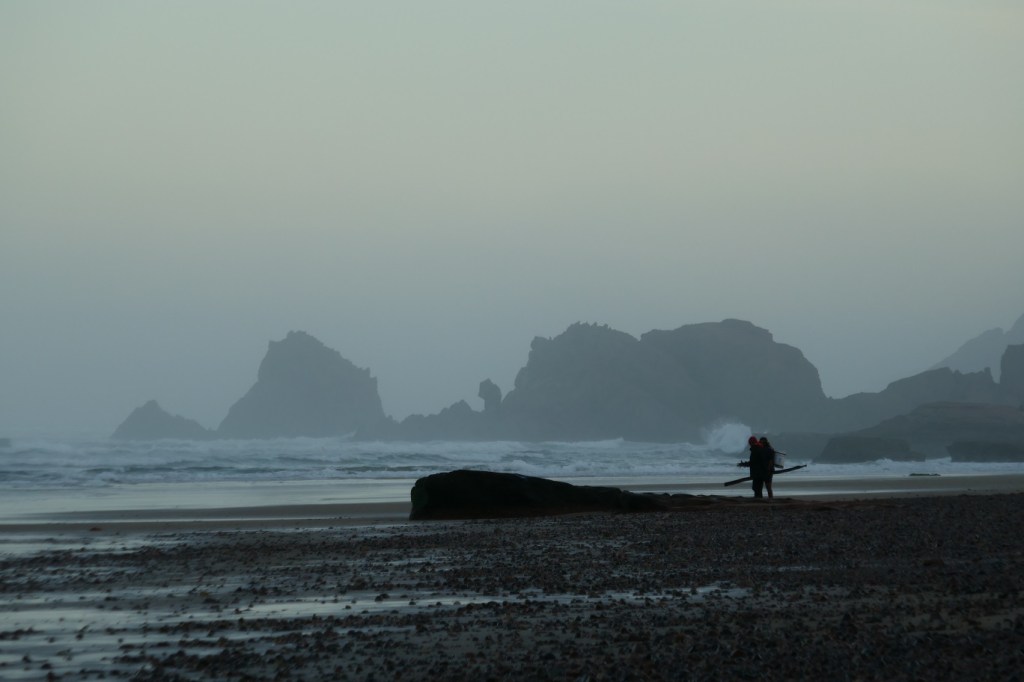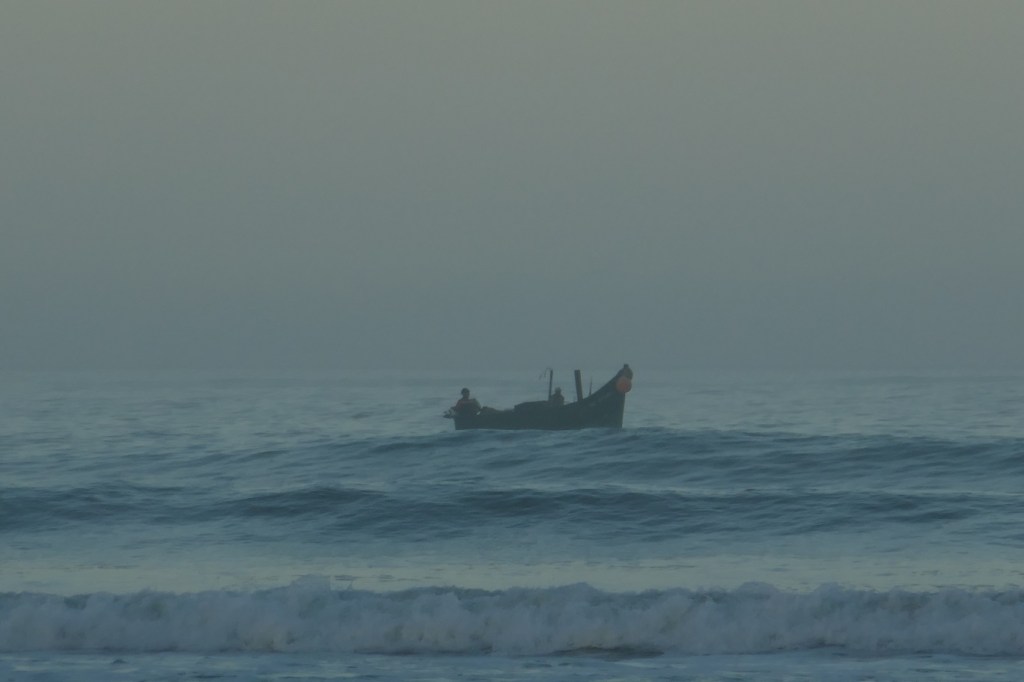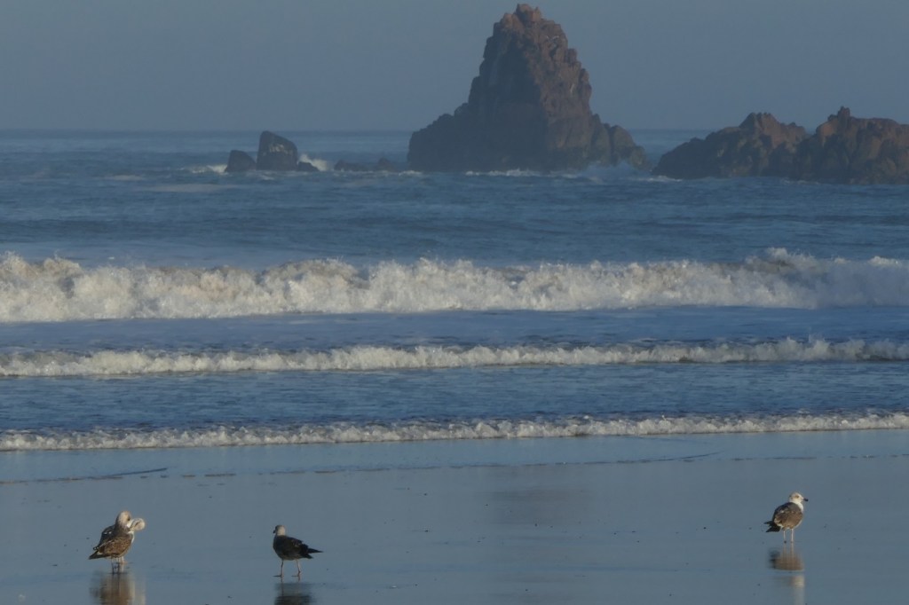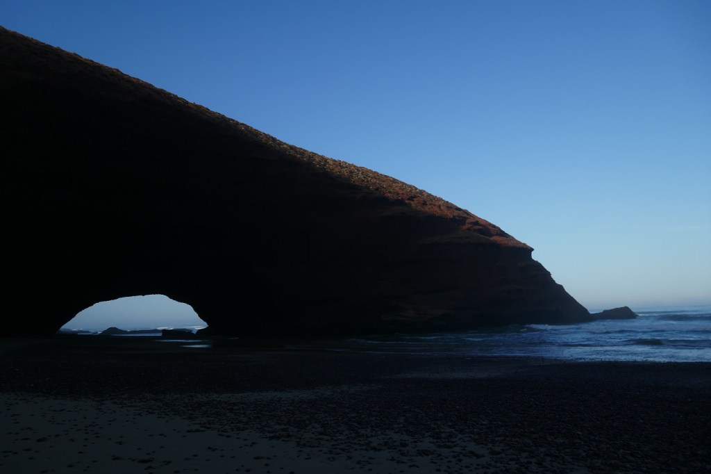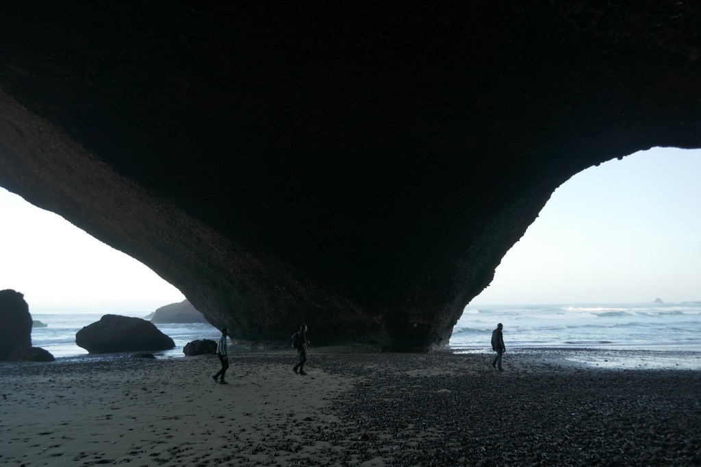 Comer en cualquiera de los chiringuitos es un regalo para los amantes del pescado. Nos deleitamos con un buen tajín de pescado, calamar o pulpo. Una delicia para los sentidos, y tras la copiosa comida y entre las nieblas bajas típicas de estos lares, decidimos ir a ver el único de los 2 arcos que aún existen en la playa de Legzira.
