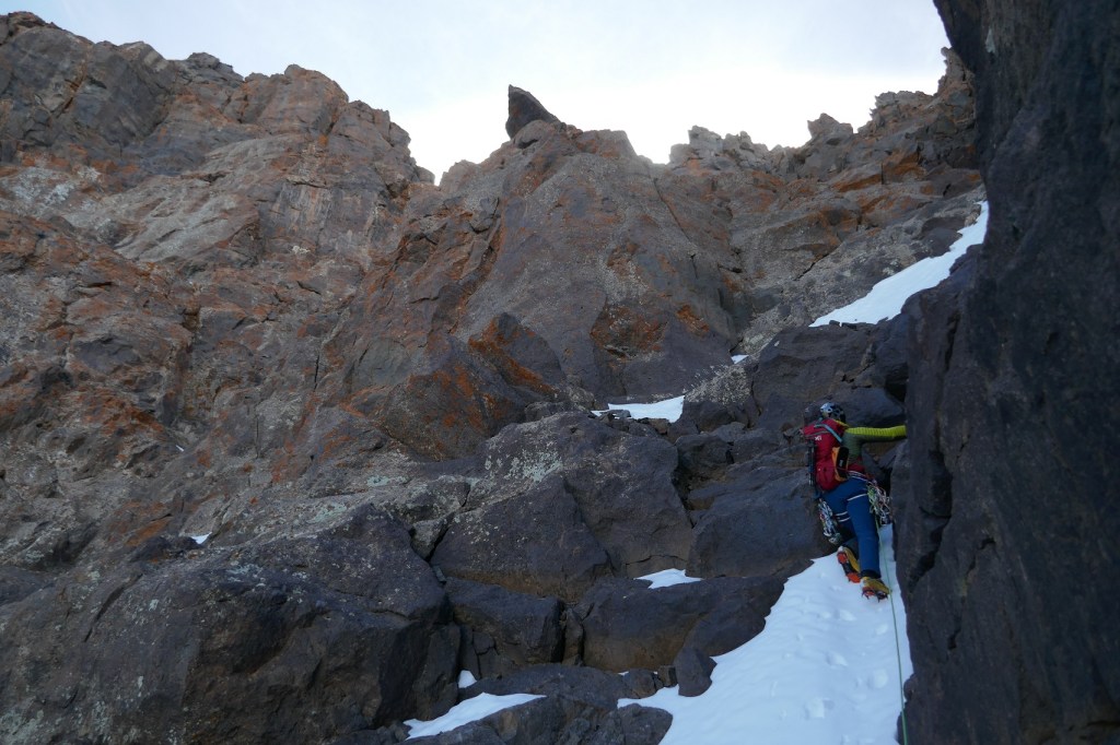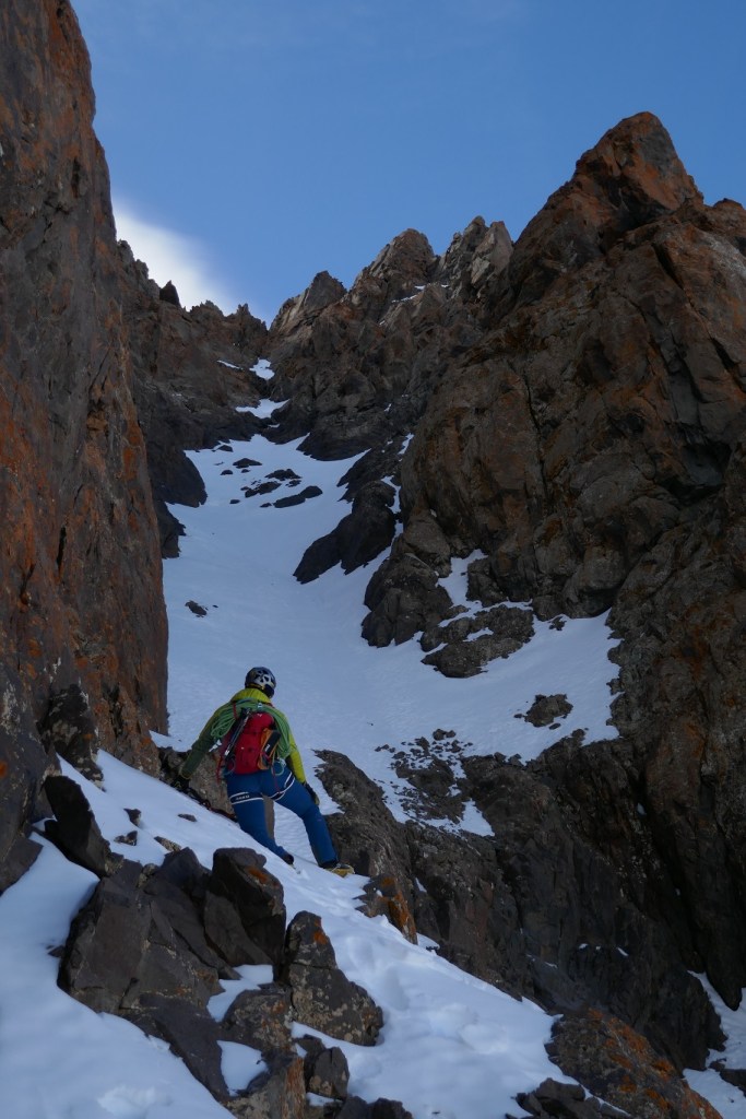 En la parte final, justo a poco de desembocar en la arista, una brecha descompuesta nos presenta la última sorpresa. Por suerte el tramo desmenuzado es muy corto, más entretenido que problemático.