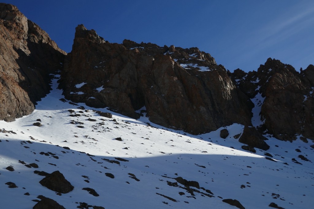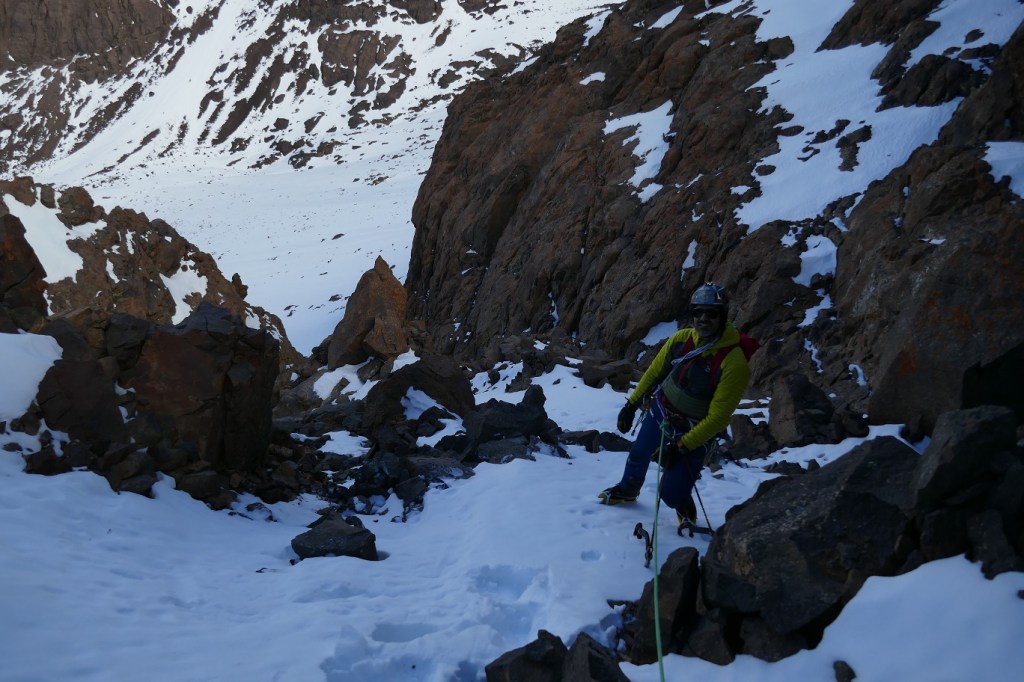 Tiempo perfecto y condiciones de nieve inmejorables, como suele ser habitual en el Atlas. Este año muy poca nieve, pero dura como una piedra. Es de suponer que la ruta que abrimos en este invierno tendrá otras características bien diferenciadas un año de buenas nevadas, pero como siempre suele pasar, la reseña original de la primera ascensión, es la que debe marcar tendencia. Ahora por ahora es la única.