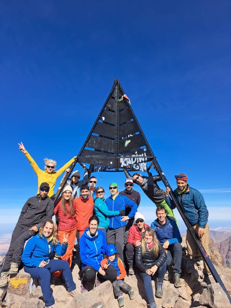 Cumbre del Toubkal, techo del Atlas. Como tantas otras veces, éxito absoluto. Todos en la cumbre. El dia despejado, el cielo azul y el buen tiempo acompañan.