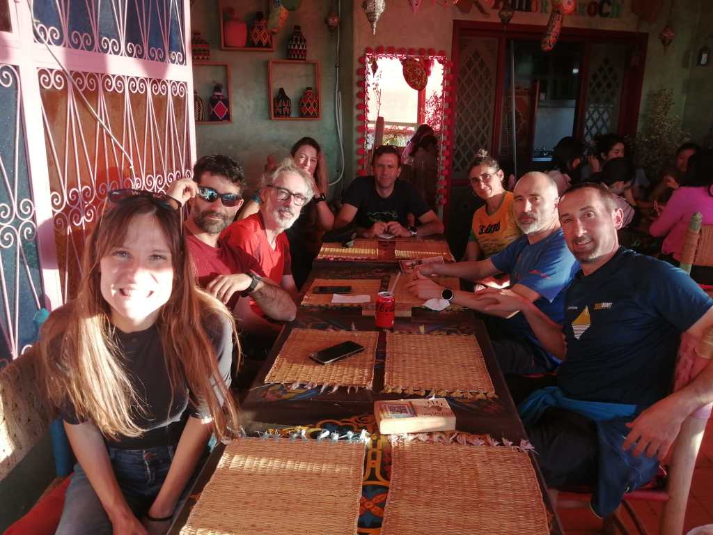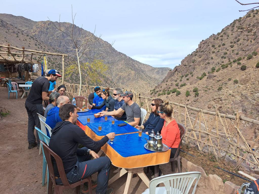 La clásica parada para comer durante la jornada al refugio del Toubkal, en los últimos azibs a casi 3.000 m de altura. A pesar de que estamos en diciembre y la sombra de la tarde ya domina todo el valle, la temperatura es sumamente agradable.