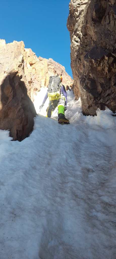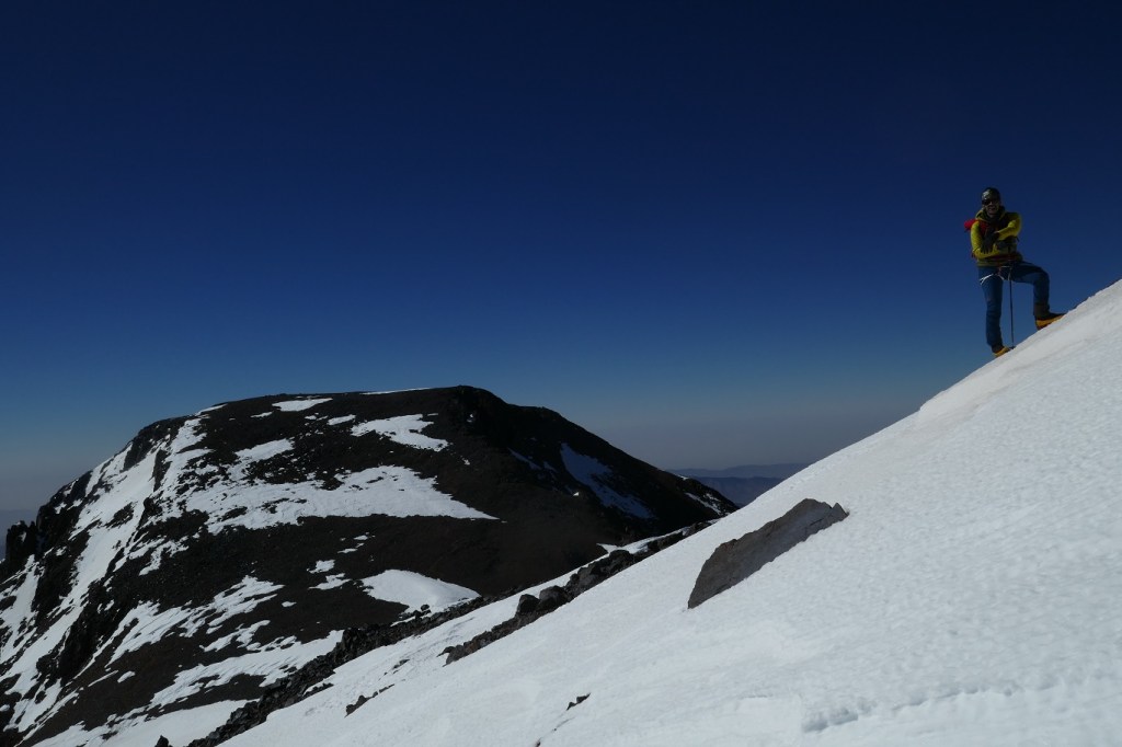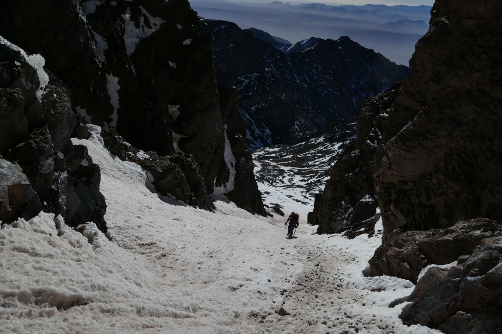 Este corredor, muy evidente, nos permite subir a la segunda cumbre más alta del Atlas por un rincón insólito, desconocido y mágicamente solitario. Nada que ver con la más que frecuente vía normal de la montaña.