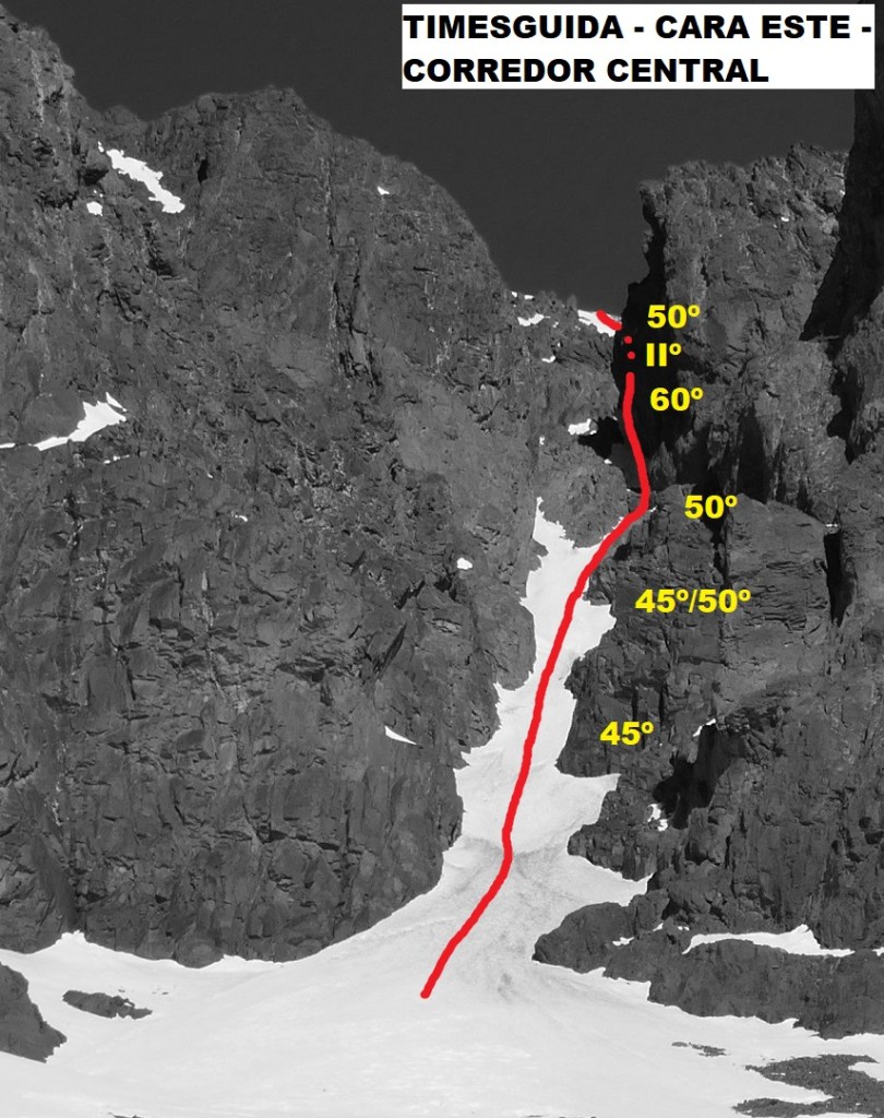 - Nombre de la Ruta: CORREDOR CENTRAL DE LA CARA ESTE DEL TIMESGUIDA, 4.086 m