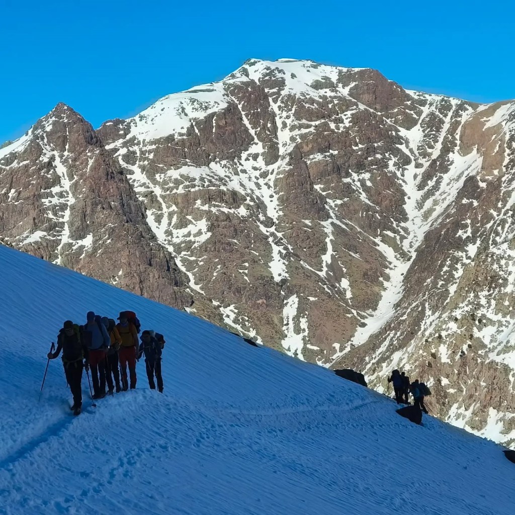 Pocas veces en mi vida, por no decir nunca (y llevo muchos años escalando en Pirineos, Alpes y otras tantas Cordilleras del Planeta), he encontrado unas condiciones de nieve tan excepcionalmente buenas como este año 2026 durante la celebración del ya habitual y clásico STAGE DE ALPINISMO BEREBER. Nieve dura al partir de noche, nieve dura al alba, nieve dura por la mañana, nieve dura por la tarde. Una verdadera maravilla, un sueño para el escalador alpino.