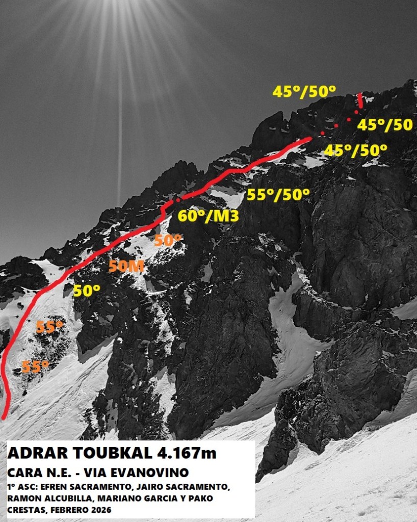 - Nombre de la Ruta: VIA EVANOVINO A LA CARA NORESTE DEL TOUBKAL, 4.167m