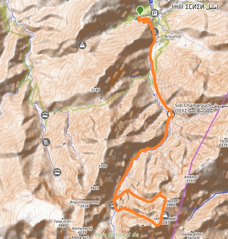 - 2º DÍA – 9 DE SEPTIEMBRE: IMLIL – REFUGIO TOUBKAL (3.106 M): De buena mañana realizamos el traslado de Marrakech a Imlil (poco más de 1 hora) e inciamos la caminata. Remontaremos el camino que nos llevará hasta Aremd a casi 2.000 m. ( el pueblo más elevado del Valle de Imlil),pasando por Sidi Chamarrouch para llegar al refugio Toubkal por la tarde. Noche en el refugio.