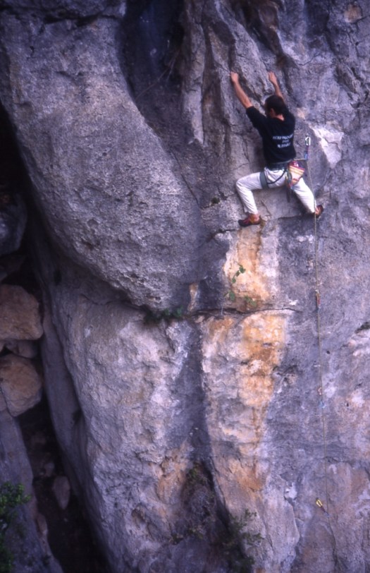 OMAR SANTOS: 15 m. 6a+. Vía de placa vertical con regletillas. Pasos de equilibrio.